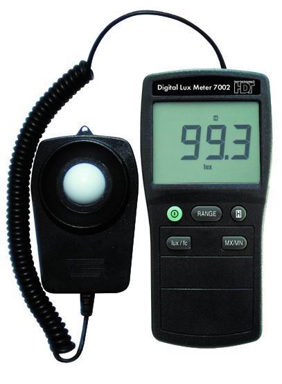 照度計(jì)的使用步驟: ①打開電源。 ②打開光檢測(cè)器蓋子,并將光檢測(cè)器水平放在測(cè)量位置。 ③選擇適合測(cè)量檔位。 如果顯示屏左端只顯示“1”,表示照度過量,需要按下量程鍵(⑧鍵),調(diào)整測(cè)量倍數(shù)。 ④照度計(jì)開始工作,并在顯示屏上顯示照度值。 ⑤顯示屏上顯示數(shù)據(jù)不斷地變動(dòng),當(dāng)顯示數(shù)據(jù)比較穩(wěn)定時(shí),按下HOLD鍵(⑧鍵),鎖定數(shù)據(jù)。 ⑥讀取并記錄讀數(shù)器中顯示的觀測(cè)值。觀測(cè)值等于讀數(shù)器中顯示數(shù)字與量程值的乘積。 比如:屏幕上顯示500,右下角顯示狀態(tài)為“×2000”,照度測(cè)量值為1000000lx,即(500×2000)。 ⑦再按一下鎖定開關(guān),取消讀值鎖定功能。 ⑧每一次觀測(cè)時(shí),連續(xù)讀數(shù)三次并記錄。 ⑨每一次測(cè)量工作完成后,按下電源開關(guān)鍵,切斷電源。 ⑩蓋上光檢測(cè)器蓋子,并放回盒里。