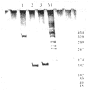 Fig. 3 Identification of cells transformed by PCR, 8% non-denaturing PAGE ,150 V for 2 hours and silver-staining