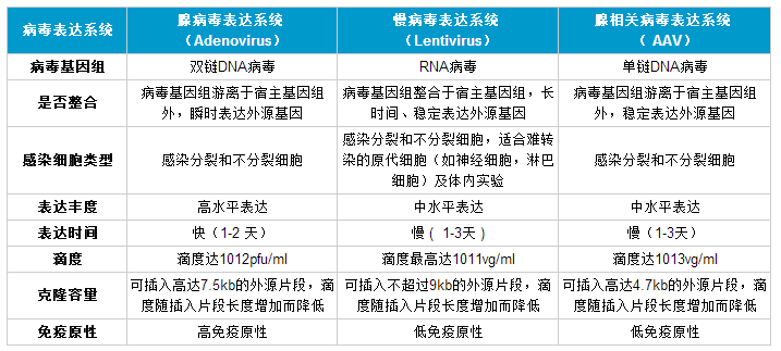 圖1 HIV-1 RNA結構圖 HIV-1為雙鏈RNA病毒,共有9個基因,如圖1所示。gag、pol、env3個基因編碼病毒的基本結構,tat、rev為調節基因,vif、vpr、vpu、nef 4個為輔助基因。其中,gag基因編碼病毒的核心蛋白,包括基質蛋白、衣殼蛋白、核衣殼蛋白;pol基因編碼病毒復制所需的酶,如反轉錄酶、整合酶、蛋白酶,env基因編碼病毒的包膜糖蛋白,決定病毒感染宿主的靶向性。rev編碼的蛋白調節gag、pol、env的表達水平,tat編碼的蛋白參與RNA轉錄的控制。4個輔助基因編碼的蛋白則作為毒力因子參與宿主細胞的識別和感染。兩端為長末端重復序列(LTR),內含復制所需的順式作用元件,如包裝信號元件Ψ。 第一代慢病毒載體系統是以三質粒系統為代表,該系統由包裝質粒、包膜質粒及載體質粒3種質粒組成。包裝質粒是HIV-1前病毒基因組5’端LTR由巨細胞病毒早期啟動子取代,3’LTR由SV40 polyA序列取代。包裝成分分別構建在兩個質粒上,一個表達gag和pol,另一個表達env。載體質粒攜帶了5’端LTR,和全部5’端非翻譯區域,另外還帶有rev應答元(RRE)。包膜表達質粒使用水皰性口炎病毒糖蛋白G基因(VSV-G)用來代替了原病毒的env基因。 第二代慢病毒載體系統是在第一代的基礎上進行改進,在包裝質粒中刪除了HIV的所有輔助基因(vif、vpr、vpu和nef基因)。這些附屬基因的去除并不影響病毒的滴度和感染能力,同時增加了載體的安全性。 第三代慢病毒載體系統由四質粒代替原有的三質粒包裝系統。將rev基因單獨放在一個包裝質粒上。同時又增加了兩個安全特性:一是構建自身失活的慢病毒載體,即刪除了U3區的3′LTR,使載體失去HIV-1增強子及啟動子序列,即使存在所有的病毒蛋白也不能轉錄出RNA;二是去除了tat基因,用異源啟動子序列代替,這樣原始的HIV-1基因組中的9個慢病毒載體中只保留了3個(gag、pol和rev)。因此第三代慢病毒載體系統更加安全。 慢病毒優點 1、宿主范圍廣包裝病毒時用VSV-G基因代替了原病毒的env基因,宿主范圍更廣,如神經元細胞、肝細胞、心肌細胞、腫瘤細胞、內皮細胞、干細胞等多種類型的細胞。 2、感染能力強慢病毒載體對分裂細胞和非分裂細胞均具有感染能力,能感染絕大多數細胞,對一些難于轉染的細胞,比如神經元細胞、干細胞或其它原代細胞有較好的感染效率。 3、具有整合能力 慢病毒載體可以將外源基因有效地整合到宿主染色體上,從而達到持久性表達,因此可用于構建穩定表達目的蛋白/RNAi的細胞株,也可以用于制備轉基因動物。