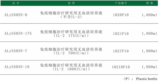 【產品概述】ALyS505N-0 無血清細胞培養基是專為細胞免疫治療研究而開發,不含有任何動物蛋白質成分,含有重組或醫療級人類蛋白質的無血清細胞培養基。對人類外周血 T 淋巴細胞具有高增殖性,是細胞免疫治療用首選培養基。