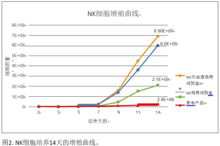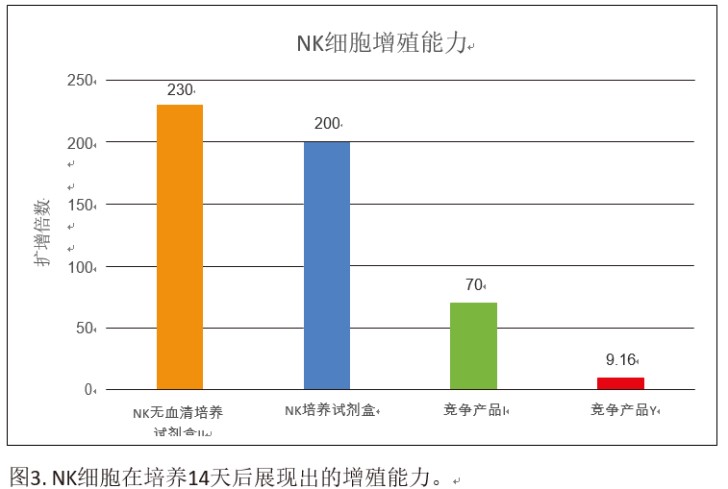 康寧NK無血清培養(yǎng)試劑盒II在無其他細胞因子(如IL-2)的條件下可以獲取較高的NK細胞增殖。